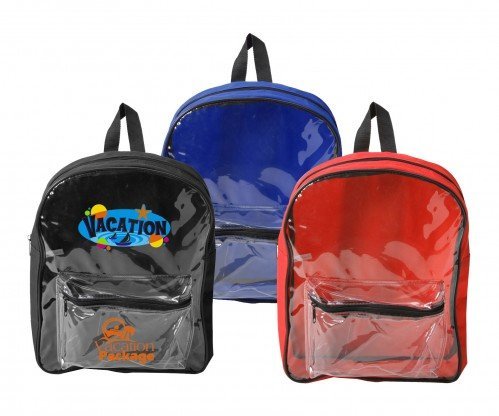 Feature: Phthalates-free material; Approved for child use; Clear front security backpack; Large front clear zipper pocket; Padded shoulder straps; Loop handle.